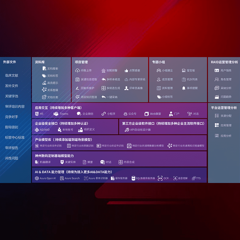 医疗器械产品上市前,,,,要熟悉严格与繁复评审标准,,,,整理分析监管机构指导文件中的海量信息。。。。企业急需一个智能化解决方案,,,,提升知识管理效率,,,提高评审通过率,,,,以提升其市场竞争力。。